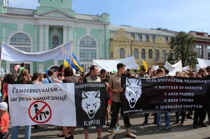At the same time Putin implemented its so-called “gay propaganda ban” in 2013, his allies were running a campaign in Ukraine using homophobic slogans to try to derail a major treaty between Kyiv and the EU. They gave Europe—”Europa” in Russian and Ukrainian—the derisive nickname “Gayropa.”